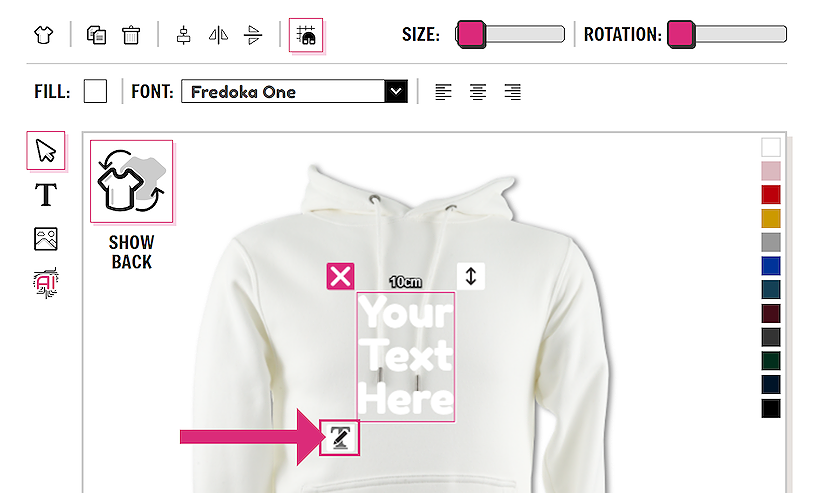 A new text element will be added to your garment. Click on the text to see the text options.